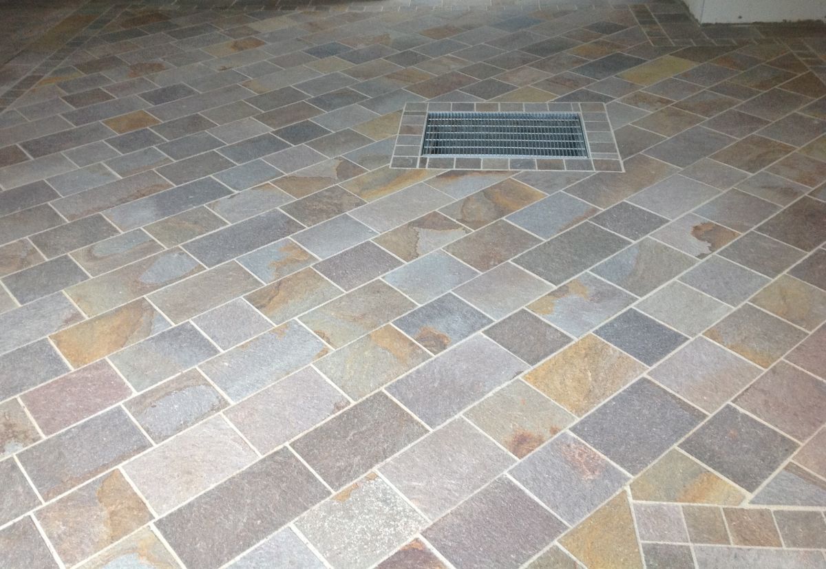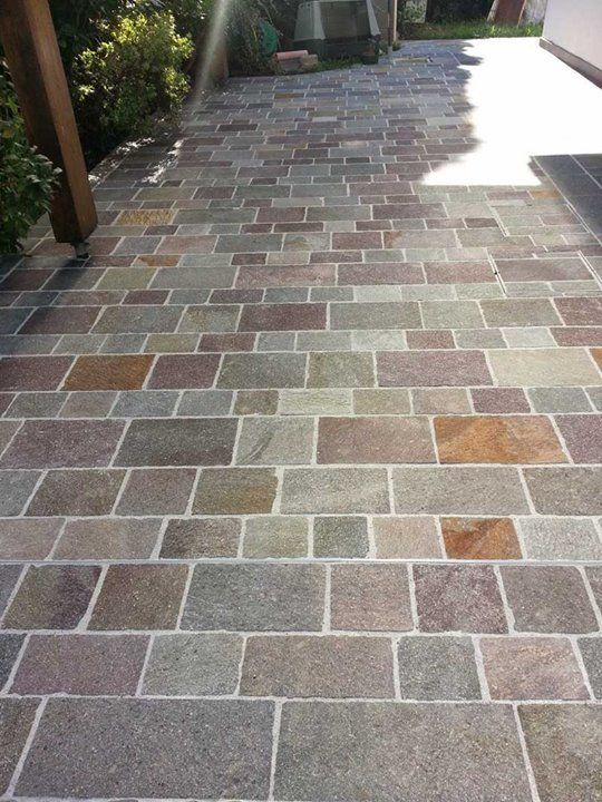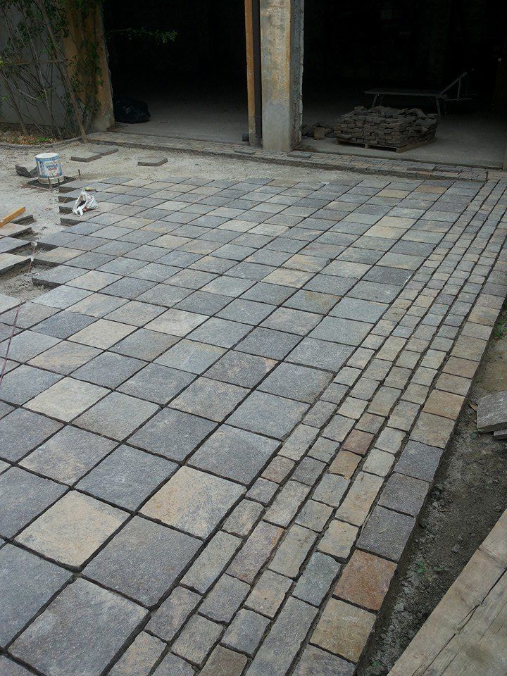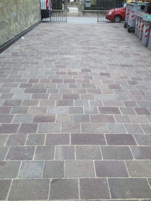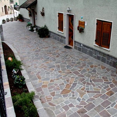 Le pavimentazioni in porfido si possono avere in lastrame tipo "opera incerta", "piastrelle squadrate" e "cubetti o sampietrini"